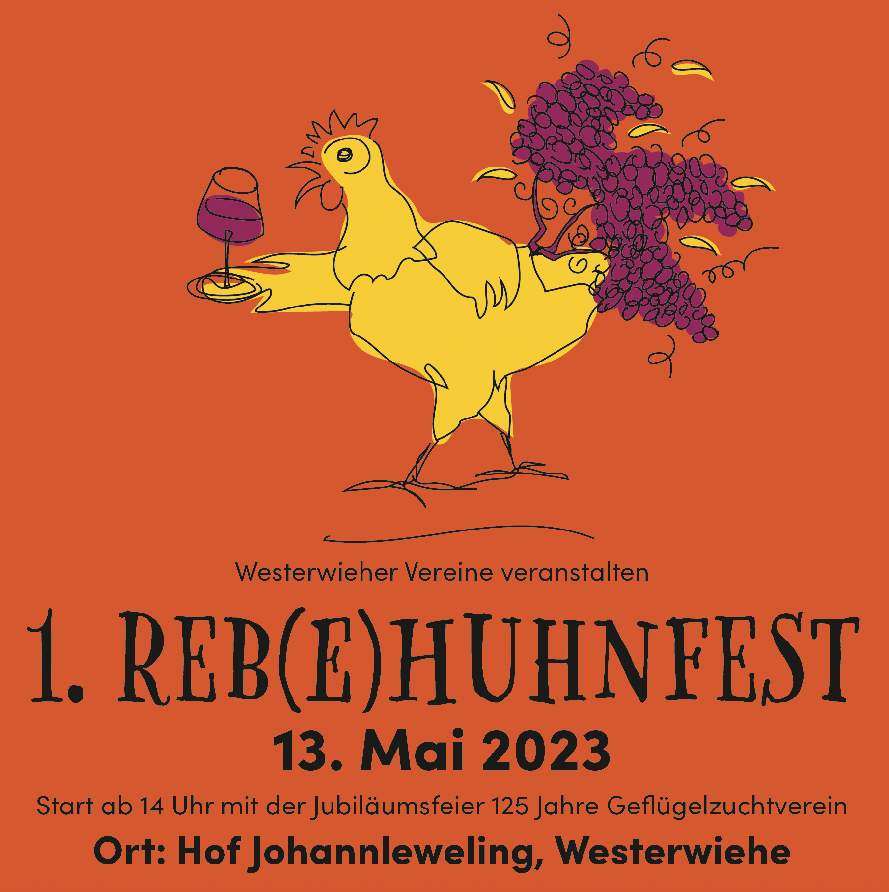 Westerwieher Vereine veranstalten am Samstag, den 13. Mai 2023 das 1. REB(E)HUHNFEST auf dem Hof Johannleweling, Lipplinger Str. 5, 33397 Rietberg.