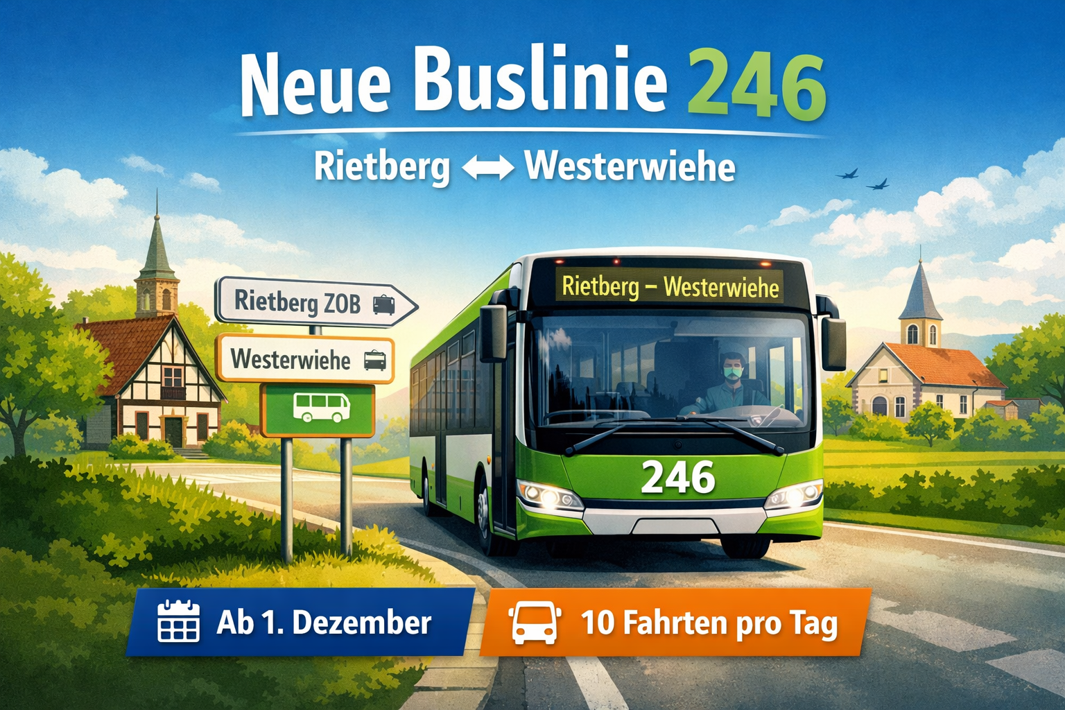 Die Linie 246 verkehrt montags bis freitags und bietet zehn Fahrten pro Tag. Ziel ist eine bessere und verlässlichere Anbindung zwischen beiden Orten.
