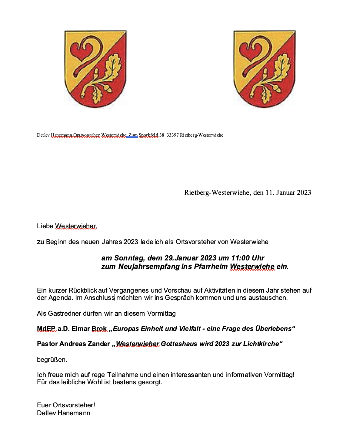 zu Beginn des neuen Jahres 2023 lade ich als Ortsvorsteher von Westerwiehe