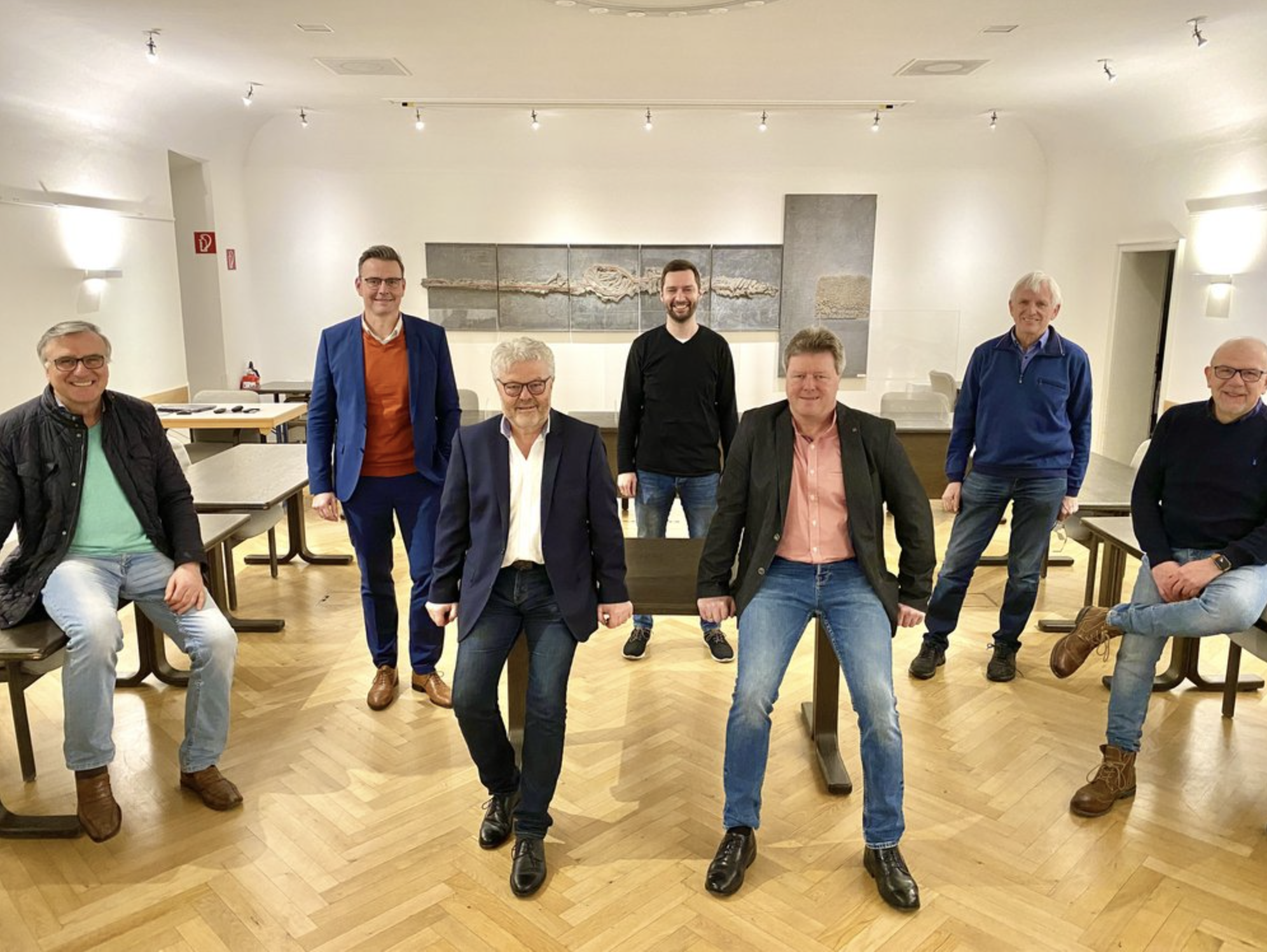 Das Foto zeigt (von links) Detlev Hanemann (Westerwiehe), Bürgermeister Andreas Sunder, Bertwald Adrian (Rietberg), Sebastian Schnusenberg (Bokel), Thomas Kofort (Druffel), Wenzel Schwienheer (Varensell) und Michael Streiß (Neuenkirchen). Für Mastholte fehlt hier Ortsvorsteher Gisbert Schnitker. Lediglich für die Fotoaufnahme haben die Anwesenden ihre Masken abgenommen. Foto: Stadt Rietberg