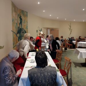 Zur Begrüßung stieß man mit einem Glas Sekt an und genoss anschließen einen gemütlichen und entspannten Vormittag. Die Familie Nadermann hatte ein umfangreiches und leckeres Büffet gezaubert, von dem die anwesenden Damen der KFD und der Landfrauen reichlich Gebrauch machten. Bei der guten Kulinarischen Grundlage wurde rege über die regionalen Neuigkeiten und sicher auch ein bisschen über die Weltpolitik diskutiert. Ein toller Vormittag für alle und es herrschte Einigkeit, im nächsten Jahr wird man es unbedingt wiederholen!