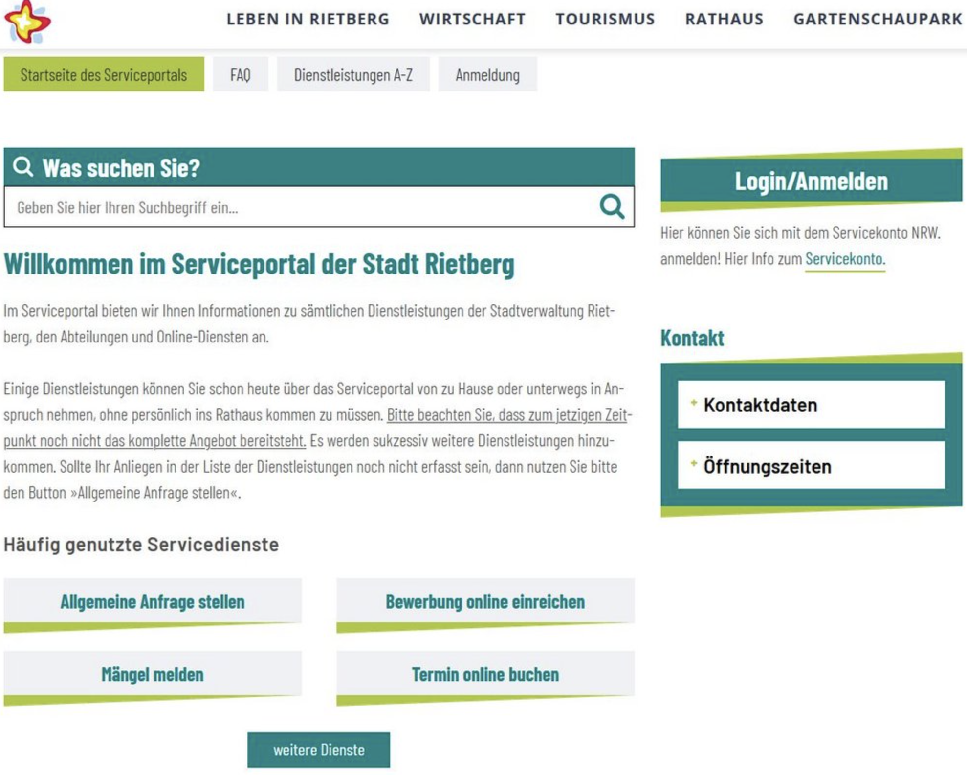 Das Serviceportal ist erreichbar über die Startseite von www.rietberg.de oder direkt auf serviceportal.rietberg.de.