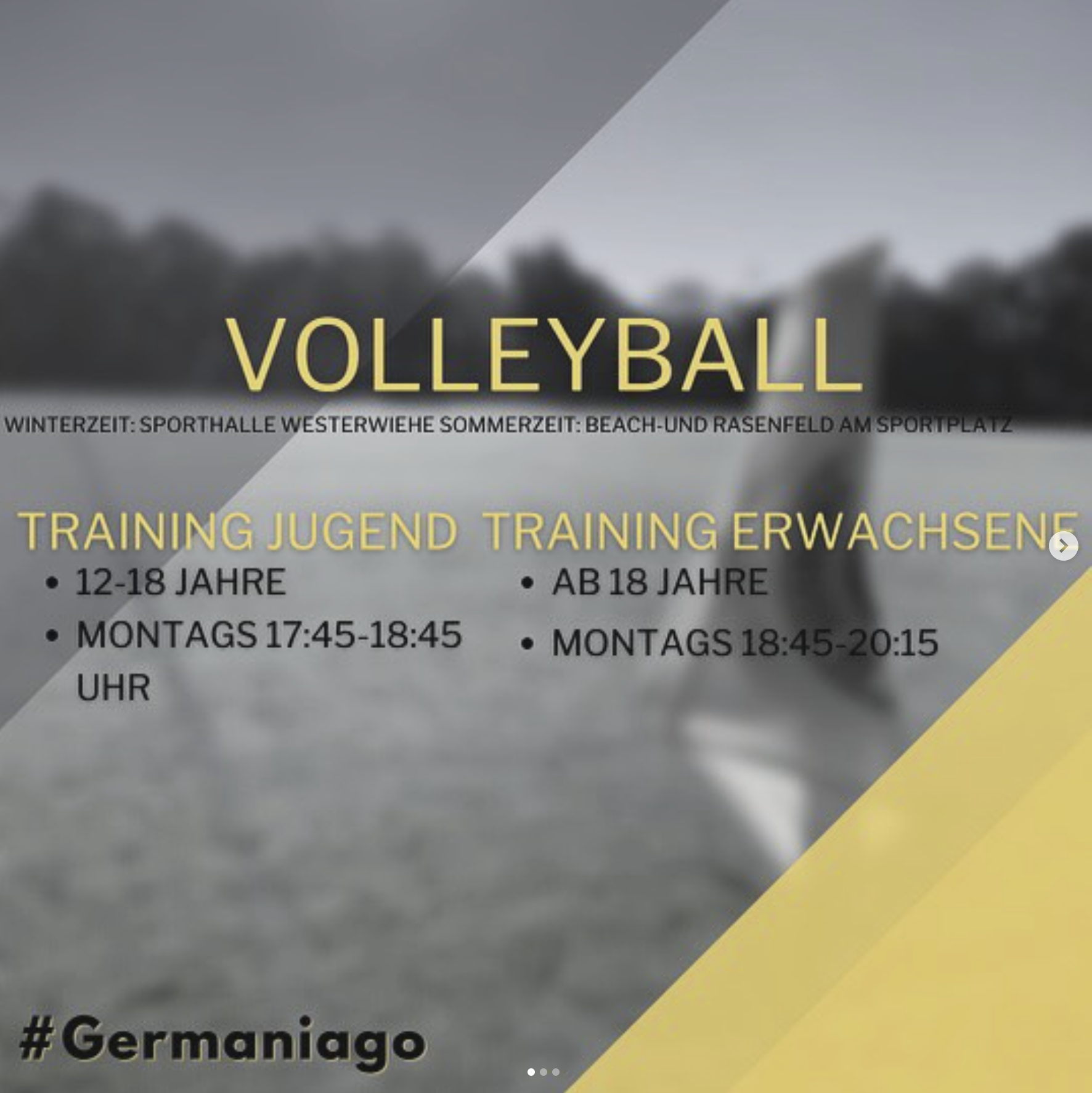 💛 Volleyball 🖤 Wir möchten euch einmal unsere Volleyball Gruppe vorstellen 🏐 Das Training der Jugend (12-18 Jahre) findet montags von 17.45 Uhr bis 18.45 Uhr statt. Im Anschluss daran spielen die Erwachsenen von 18.45 Uhr bis 20.15 Uhr.