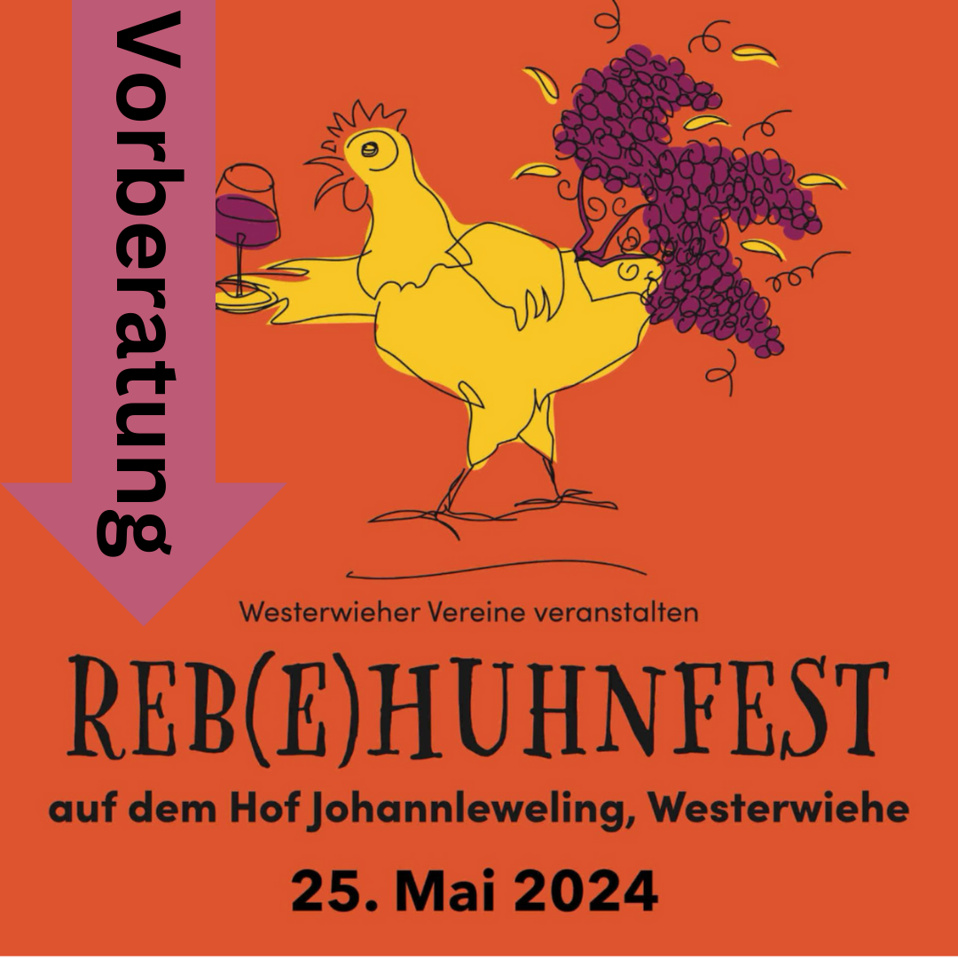 In diesem Jahr findet wieder das Reb(e)huhnfest statt. Am 17.April2024 wollen sich die Vereinsvorsitzende und Akteure im Sportheim Berkenheide um 19:00 Uhr treffen. Das Fest selber findet am 25.Mai2024 statt.